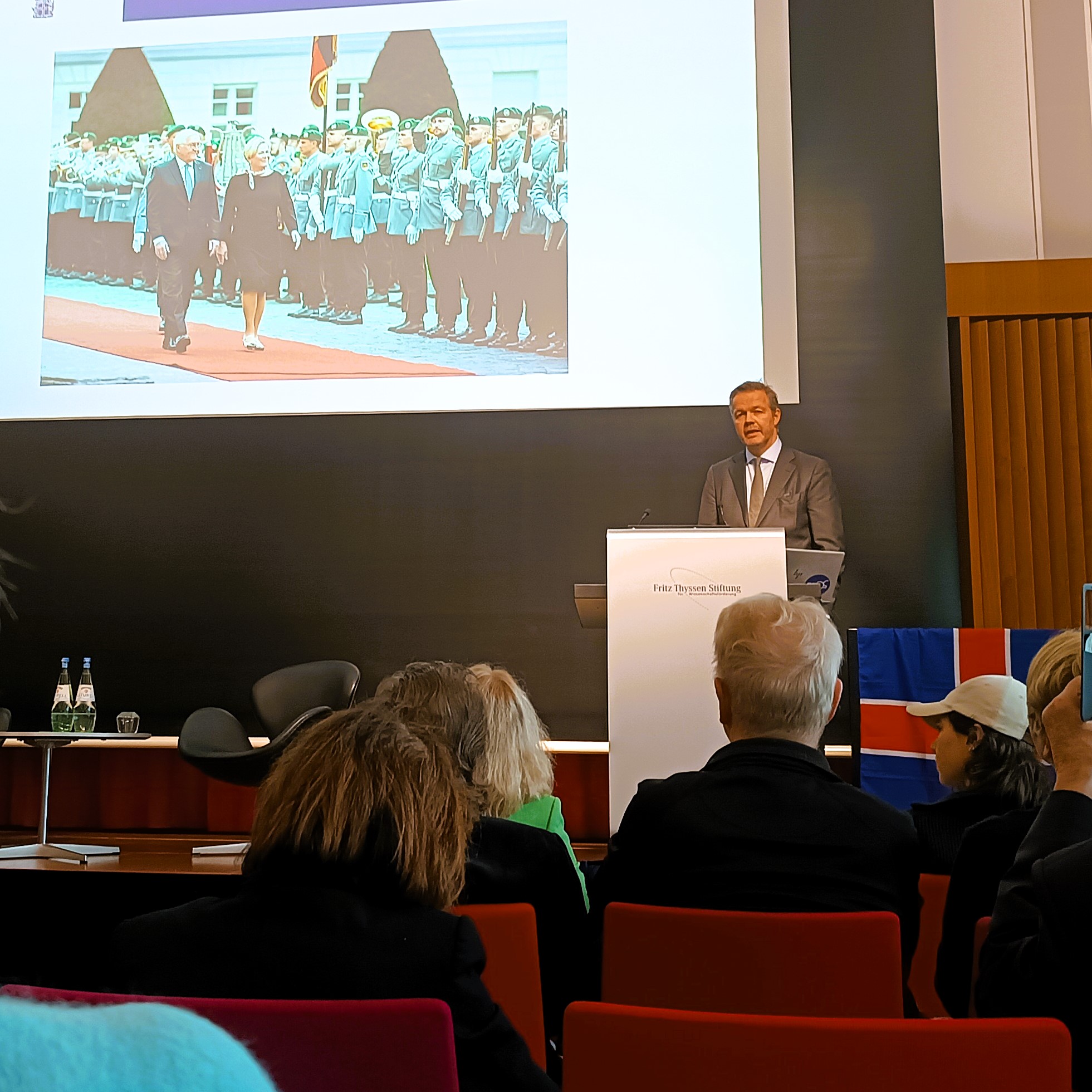 Dabei zeigte er u.a. Bilder von der 25-Jahr-Feier der Nordischen Botschaft in Berlin im Oktober 2024 und vom bilateralen Treffen der isländischen Präsidentin Halla Tómasdóttir mit des deutschen Bundespräsidenten Frank-Walter Steinmeier. Ein interessanter kurzer Einblick!